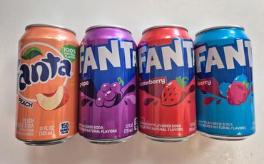 American cans, Coca Cola, Pepsi, Fanta, Irn Brew, Oasis, Red Bull, to the many flavours of Monster